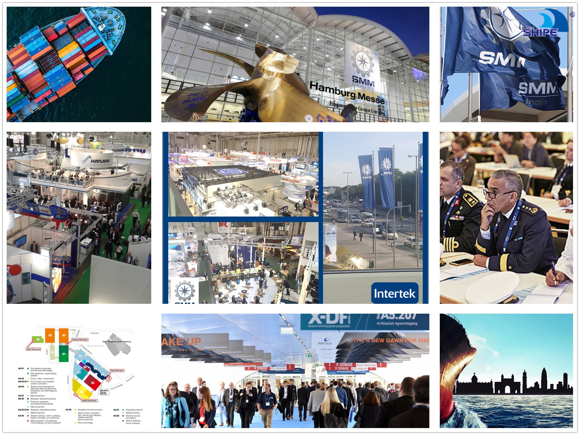 德國(guó)漢堡國(guó)際海事展(簡(jiǎn) 稱(chēng) SMM)始于 1963 年,是世界造船領(lǐng)域規(guī)模最大、檔次最高、影響力最強(qiáng)的專(zhuān)業(yè)性國(guó)際海事貿(mào)易展覽會(huì),聚集了國(guó)際上所有業(yè)內(nèi)知名企業(yè)。該展會(huì)由德國(guó)漢堡會(huì)展公司主辦,德國(guó)造船及海洋技術(shù)協(xié)會(huì)、德國(guó)機(jī)械協(xié)會(huì)、德國(guó)電子工業(yè)協(xié)會(huì)等協(xié)辦,每?jī)赡昱e辦一屆。