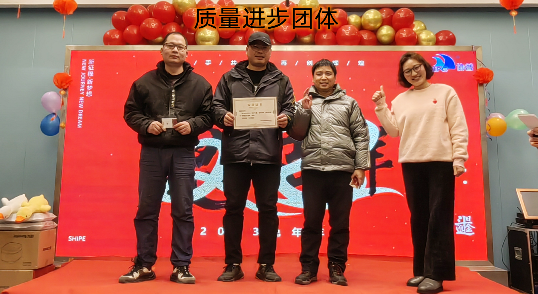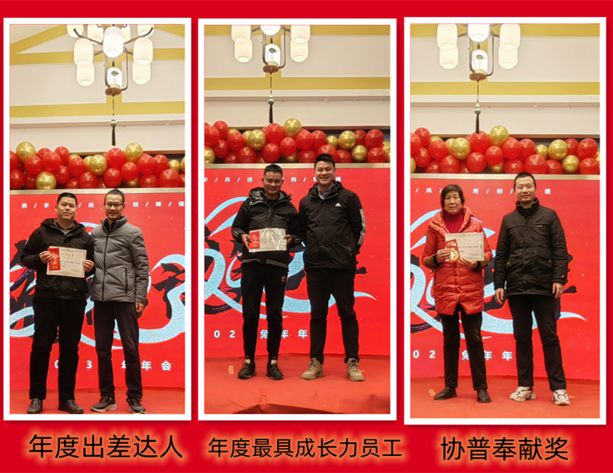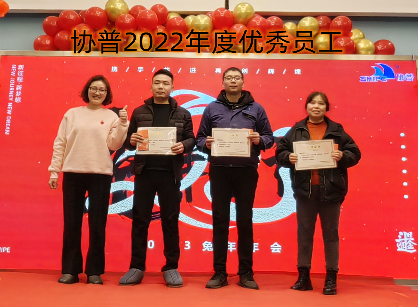 趙總致辭后,公司為2022年度表現(xiàn)優(yōu)異的團隊和個人進行了表彰。人才是公司生存和發(fā)展之本。公司發(fā)展的每一步都離不開每個協(xié)普人的努力和付出。本年度公司共評選出三名優(yōu)秀員工——陶?;?、楊剛、徐金鳳,“2022年度突出貢獻獎”——張傳東、桂佳俊,“2022年度敬業(yè)獎”——陳阿龍,“年度宣傳小能手”——宋玉秋;“協(xié)普年度出差達人”——胡金龍,“年度最具成長力員工”——王傳銀,“5S進步團體”——技術(shù)部、車間鉚焊班,“質(zhì)量進步團體”——質(zhì)量部,“協(xié)普奉獻獎”——劉庭玉。